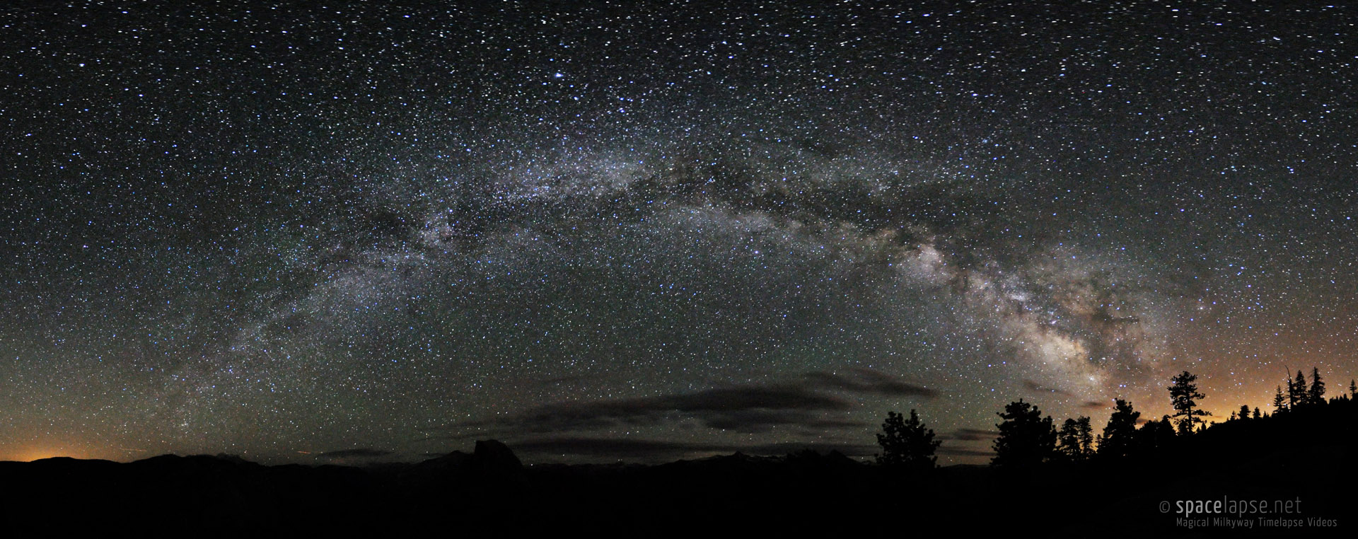 Beschreibung: Dieses Panoramabild der Milchstraße entstand aus 11 Bildern auf dem Glacier Point im Yosemite National Park. Dank dem extrem dunklen Himmel kommen die Farben der Milchstraße sehr gut hervor.