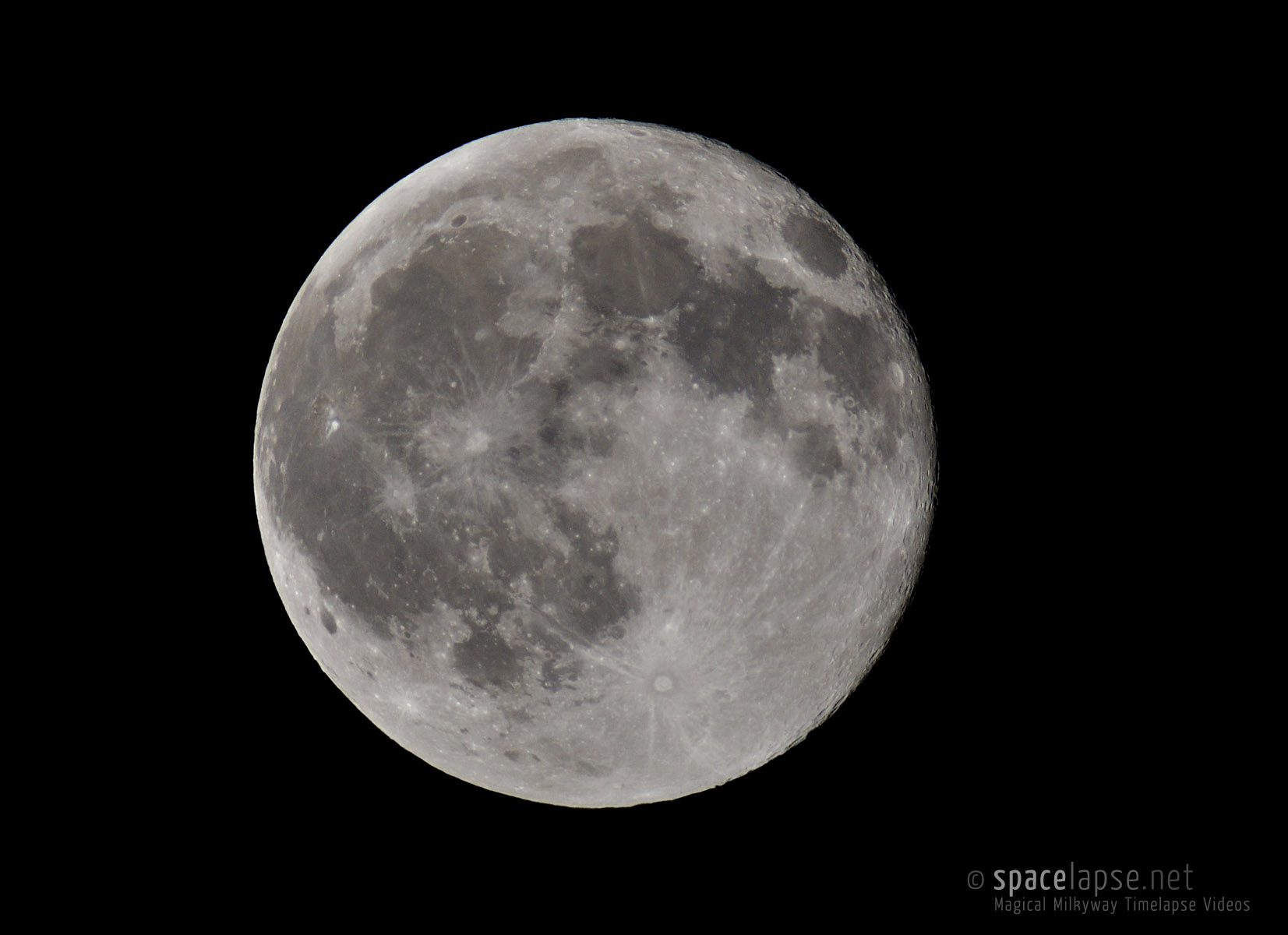 Description: This photograph shows the moon only one day before full moon. The shadows and contrasts at the edge of the trabant can only be seen one or two days before full moon.