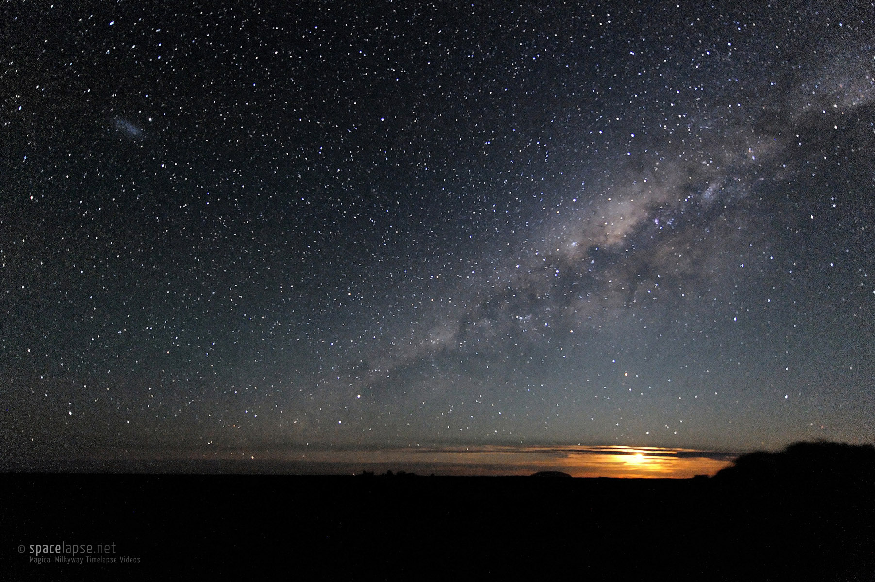 Description: The australian night sky is just breathtaking: Even if the moon is shining, the milky way unfolds it's structures and colors. Just a few minutes before moon set there was a spectacular view, because the clouds have been enlightend from the back. Uluru (Ayers Rock) is waiting for the milky way to lay down above it..